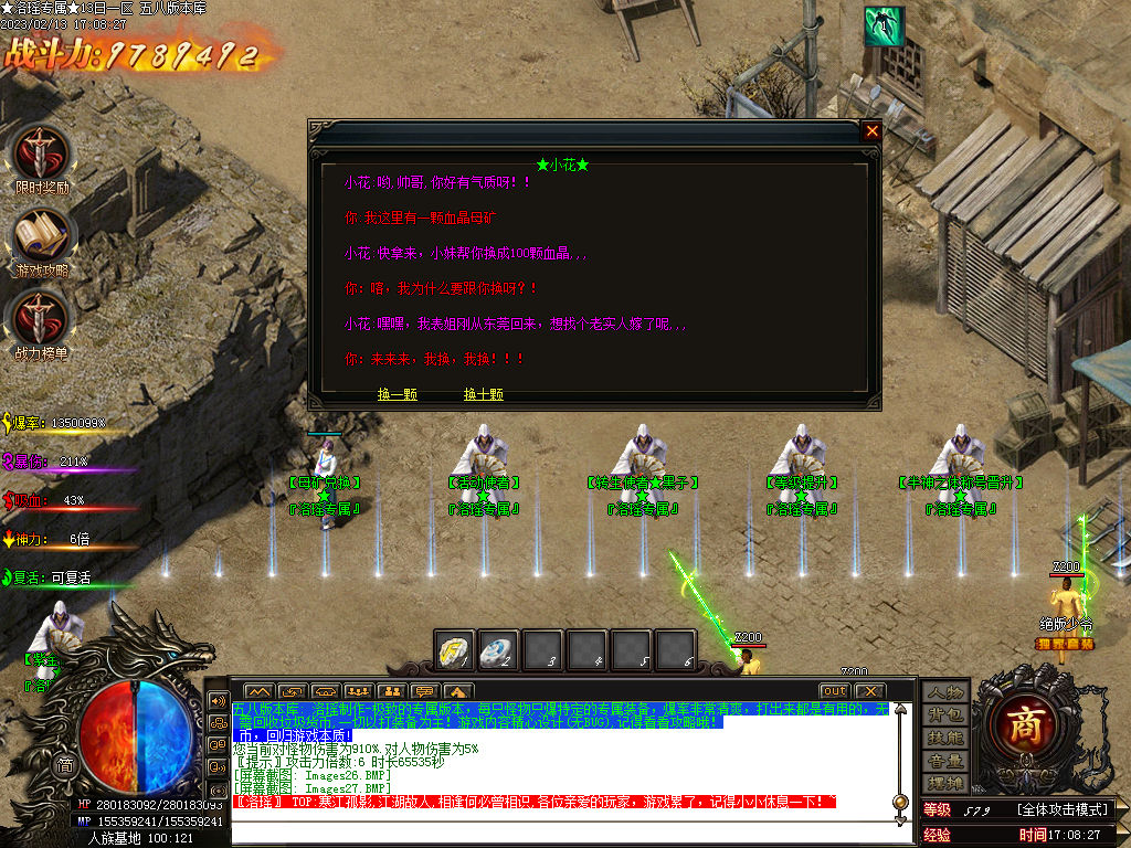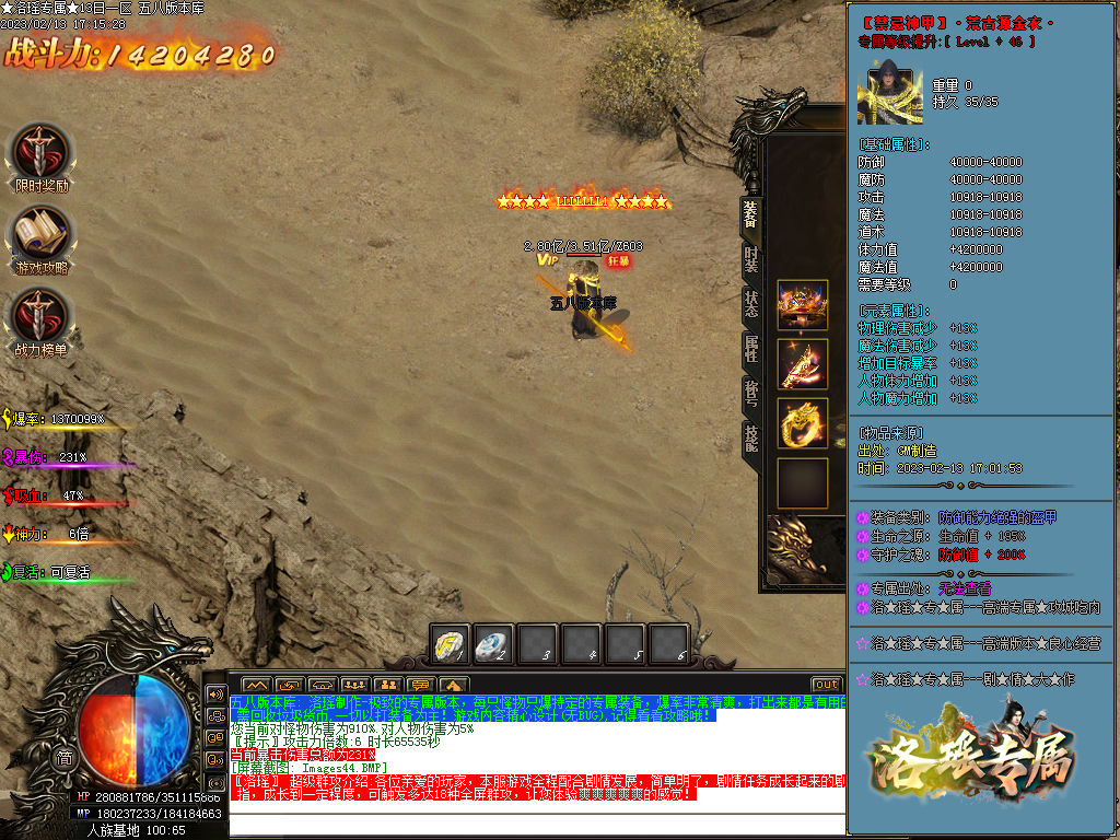 进服把全部福利领了,包括群礼包,VIP礼包,充值回馈的前面2个礼包,全部送了,爆率多多,有免费的+15套,和半月等技能书