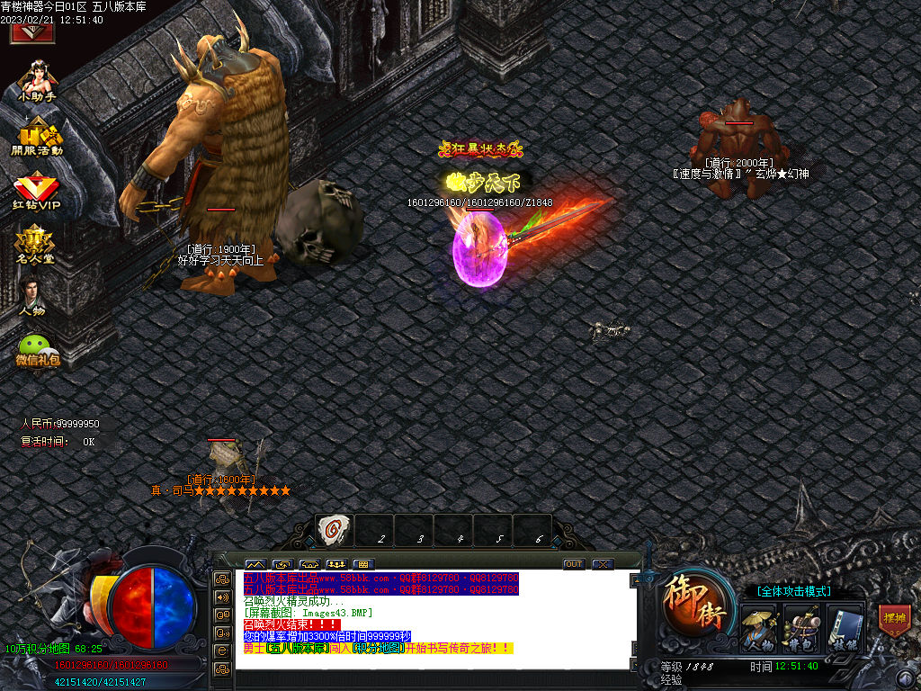 <进入新手地图配合仙术-至尊召唤既可打宝,游戏所有怪物都可爆出终极,一切看脸。<>