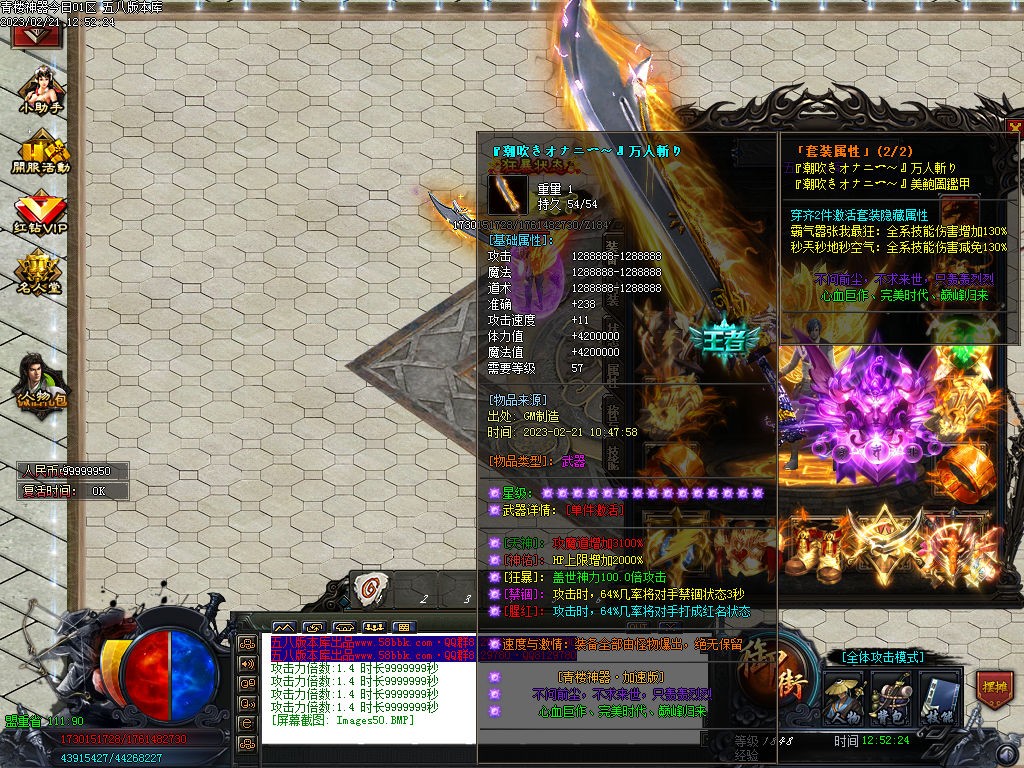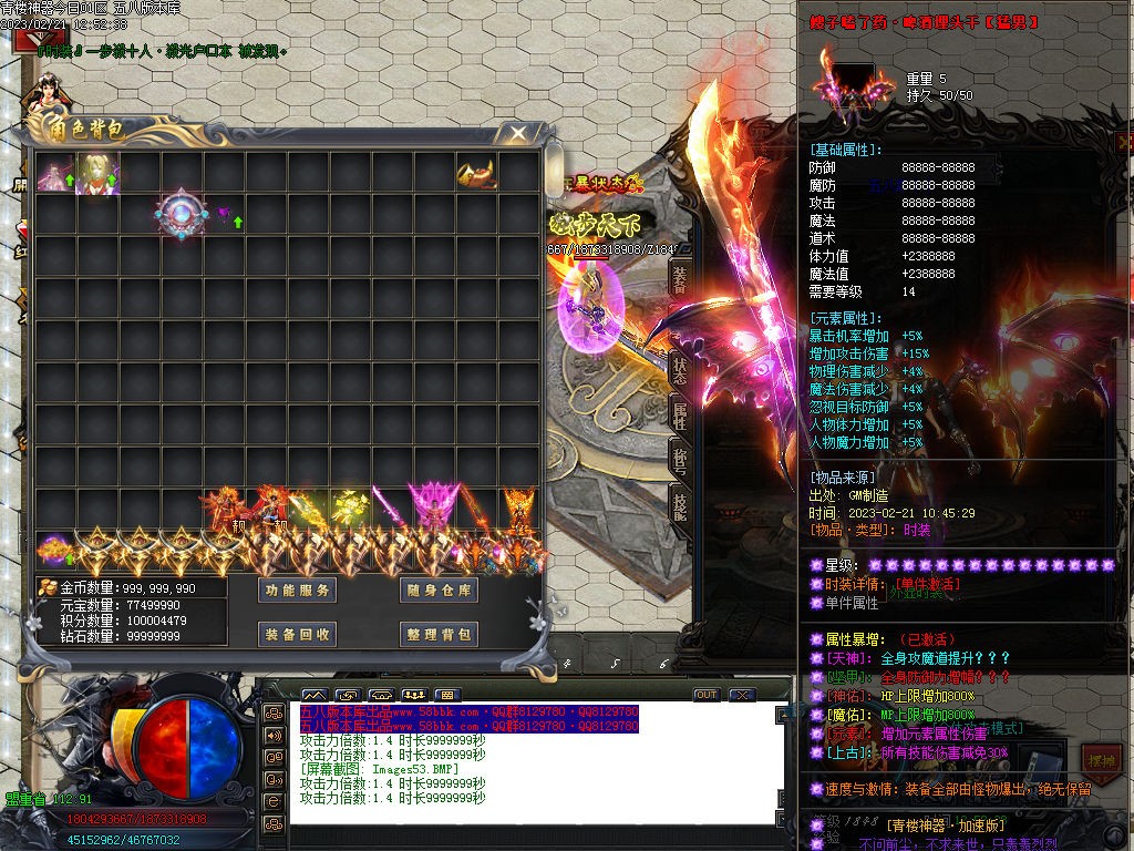 <重要:回馈使者处通过积分免费领取全部礼包!游戏内大量产出,终极装备全靠爆,怪物级越高爆率越高<>