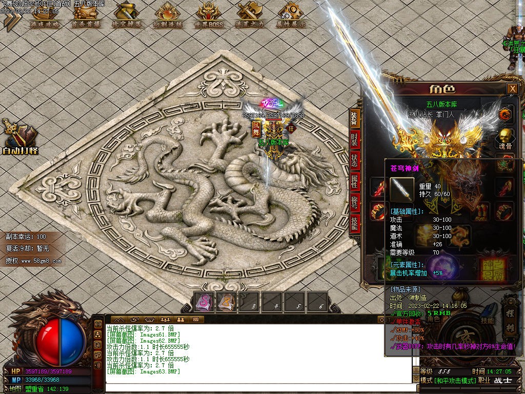 <称号:纯火龙币升级,共十级,满级称号修炼全屏吸怪,刷元宝火龙币神技!<>
