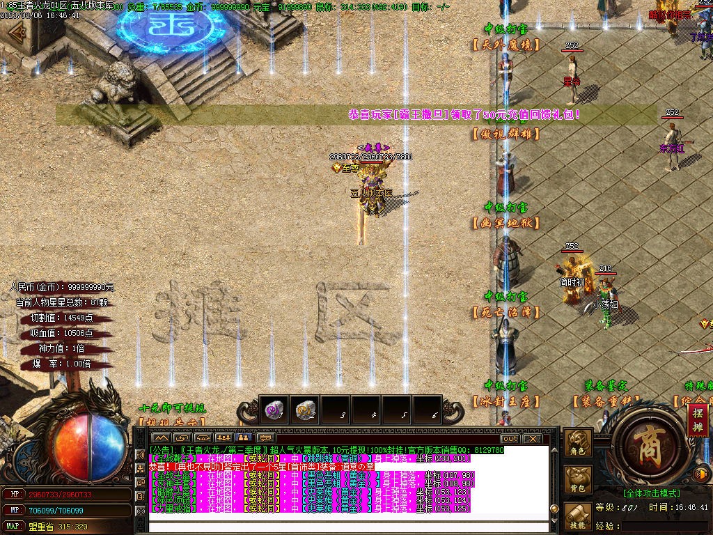 版本介绍:攻沙奖励:新区奖励500万元宝+300积分+300充值点 老区:400万元宝+50充值点