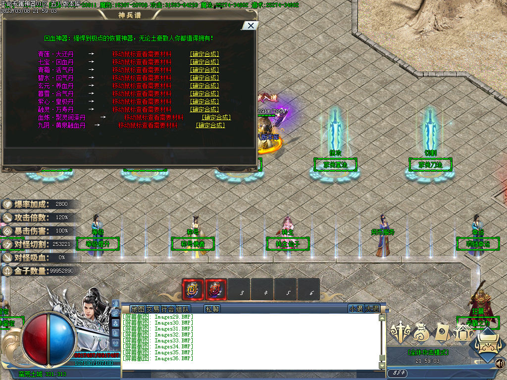 1.狂 暴: 10米通宝 属性:爆率+50% 神力倍攻+20% 刀刀切割+2000 送永久传送戒指 获得进入各门派禁地的能力