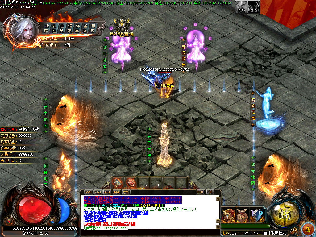 6.1.2.大陆称号升满除人行怪外基本打怪无忧了.爆率也起来了.人形怪前期千万不要碰.前期秒人.