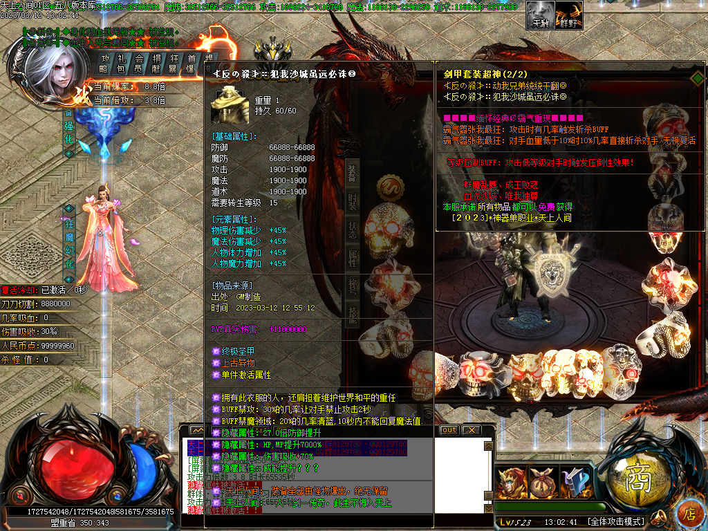 11.本F人物转生最高30转.装备等级最高20转.10转后每个装备都有特殊属性.头盔+项链 手+戒指 腰带+靴子 衣服+武器 ...都要额外特殊BUFF.