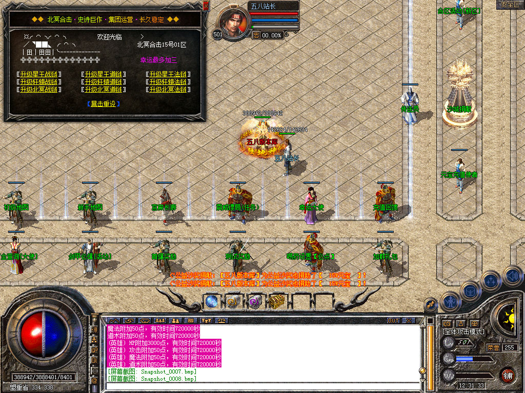 玩法不多介绍,前期从玩家手里收经验丹,到500级,后下高级地图,BOSS多多,地图多多!相比档,多了一些地图,称号以及意志★召唤