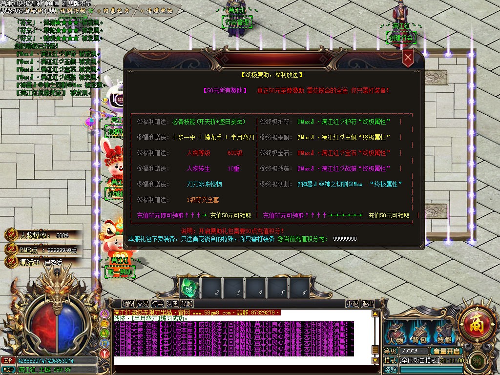 [转生介绍]:共分20转,可以通过元宝晋升,元宝打怪或者回收装备获得