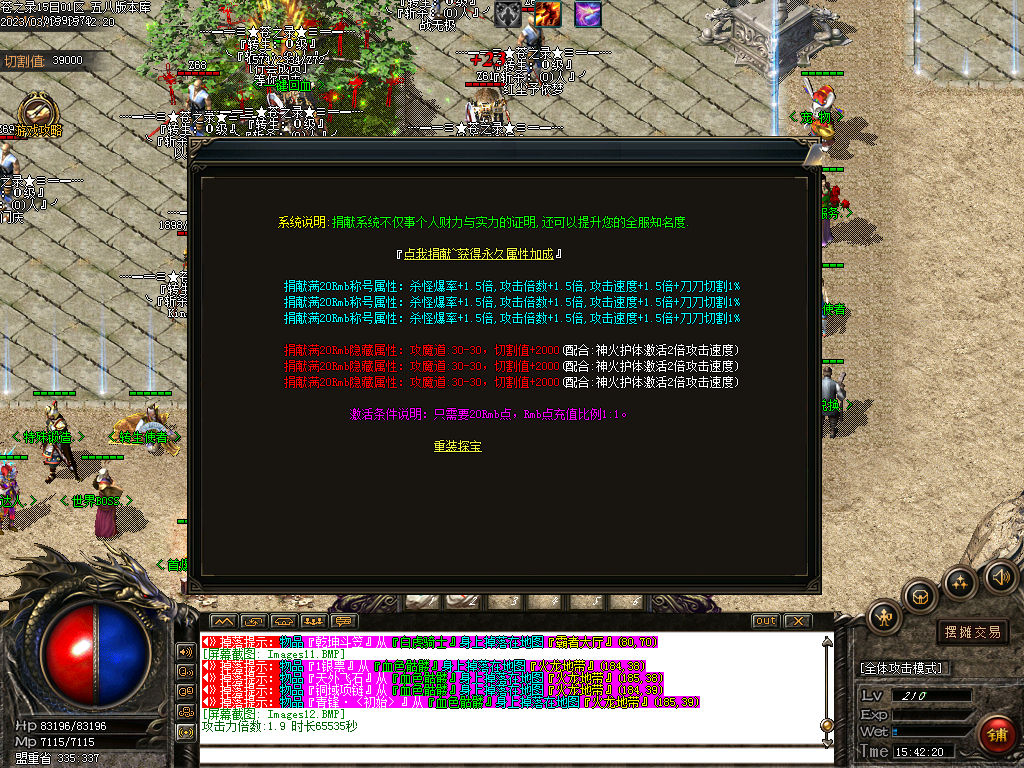 【4.】“沙城捐献”20米开启,刀刀切割+1%,永久有效增加人物爆率,攻速等功能,.详情查看NPC介绍