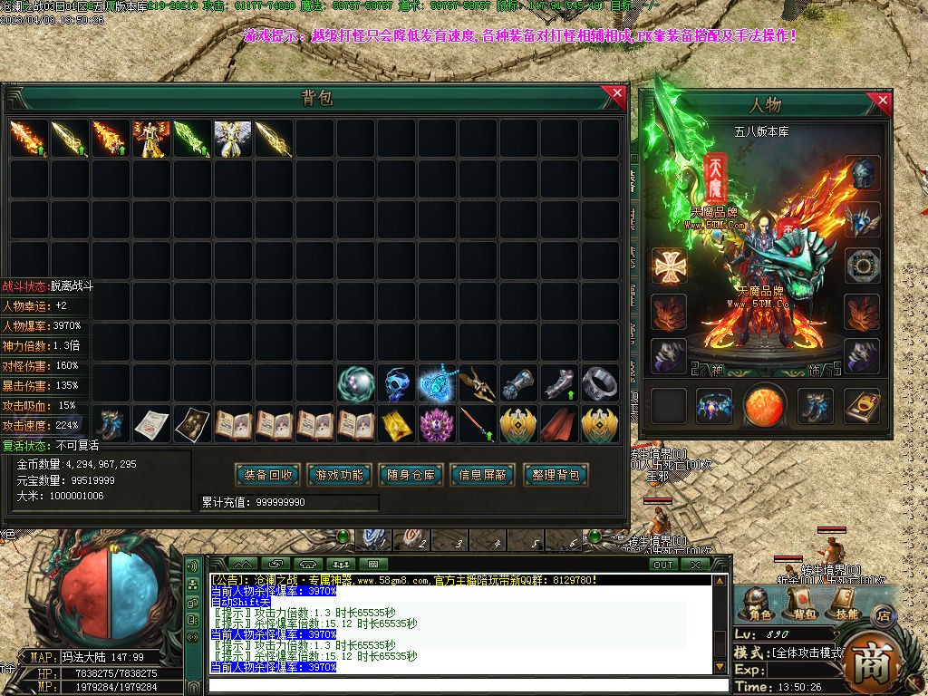游戏提示:越级打怪只会降低发育速度,各种装备对打怪相辅相成,PK靠装备搭配及手法操作!