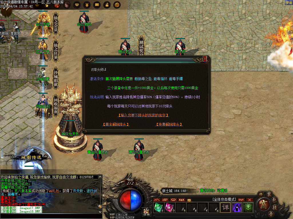 击杀任何怪物都有可能掉落 【仙炼石 妖化石】 可在土城右下回收积分