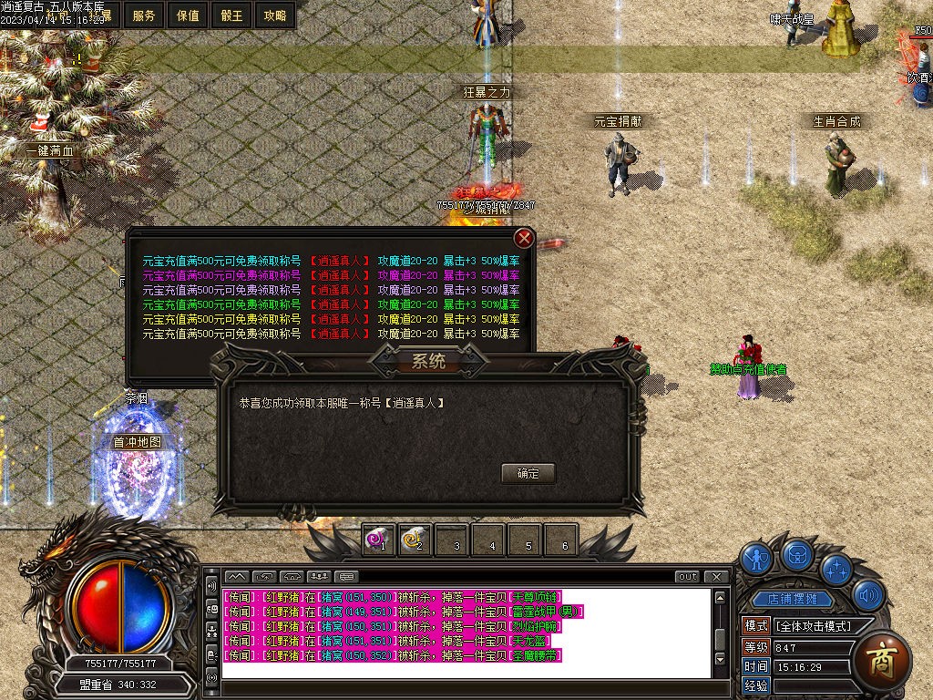 所有极品装备均可通过打怪爆出,小怪也出终极,极品+3.+5