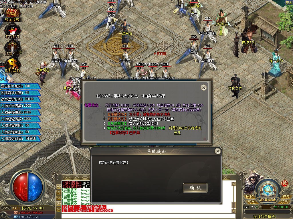 唯一会员18米(提升3倍攻速),狂暴10米,沙捐10米。