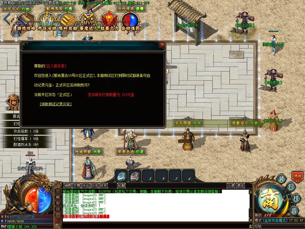 20W元宝和各种1级特殊!然后各个地图找红色BOSS打,预计1-2小时可以直接回本!!!