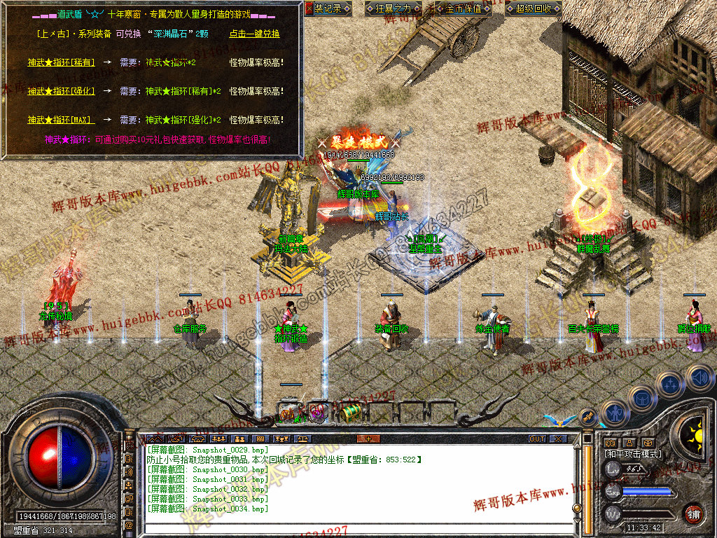 上线30米沙捐,5米龙的传人,5米经验暴涨,10米豪华礼包*16次=神武指环*32+800万元宝,32个戒指可以合成4个终极戒指,人物英雄佩戴打怪比较哇塞!