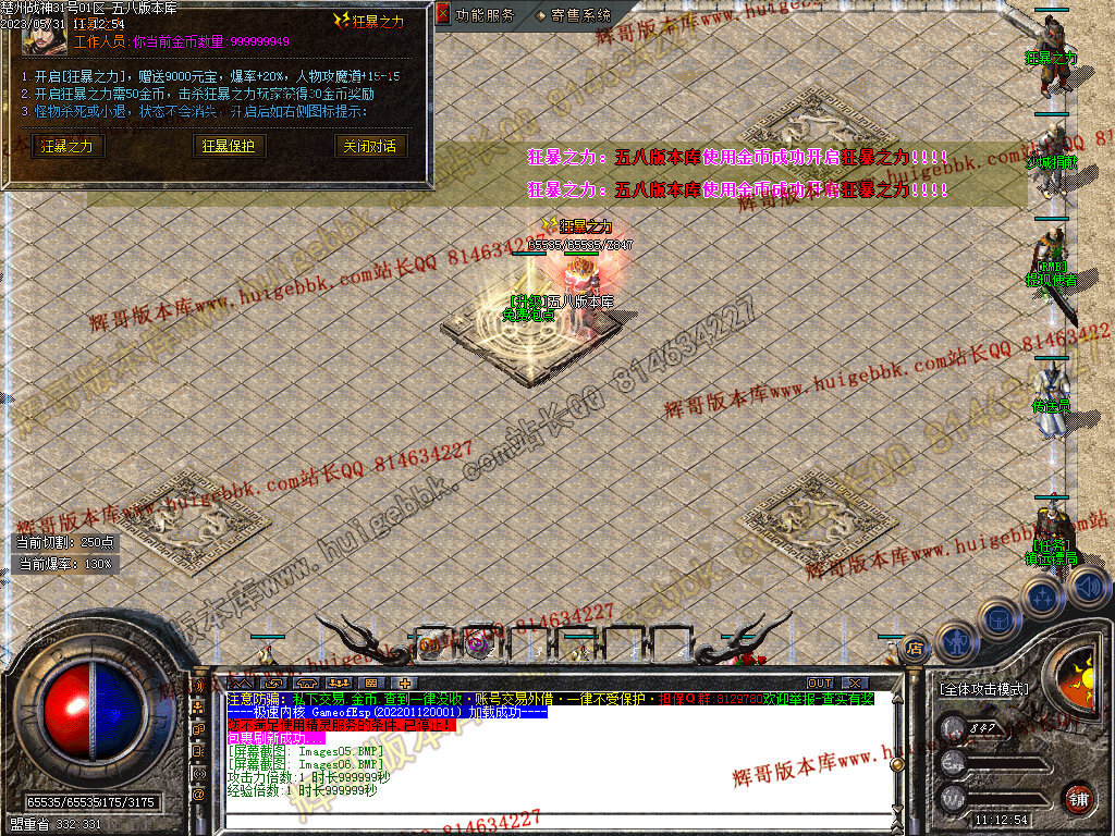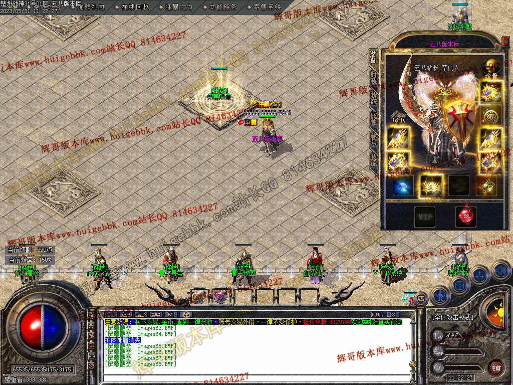装备:祖玛~赤月~雷霆~天王~炼狱~炎帝~楚州戰神。