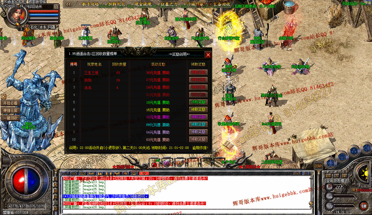 (*)新区开放第二天合区,集体开始沙巴克攻城战。