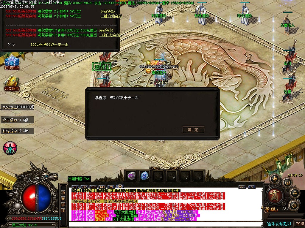 首充礼包物品5∶永久杀怪爆率100——上级立即额外增加100%杀怪爆率!!