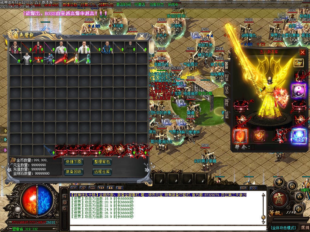 再次重申,本服前期材料碎片和等级很重要,而且好打,9999级怪和绿怪爆一切,包括终极剑甲,终极特殊只爆无合成。