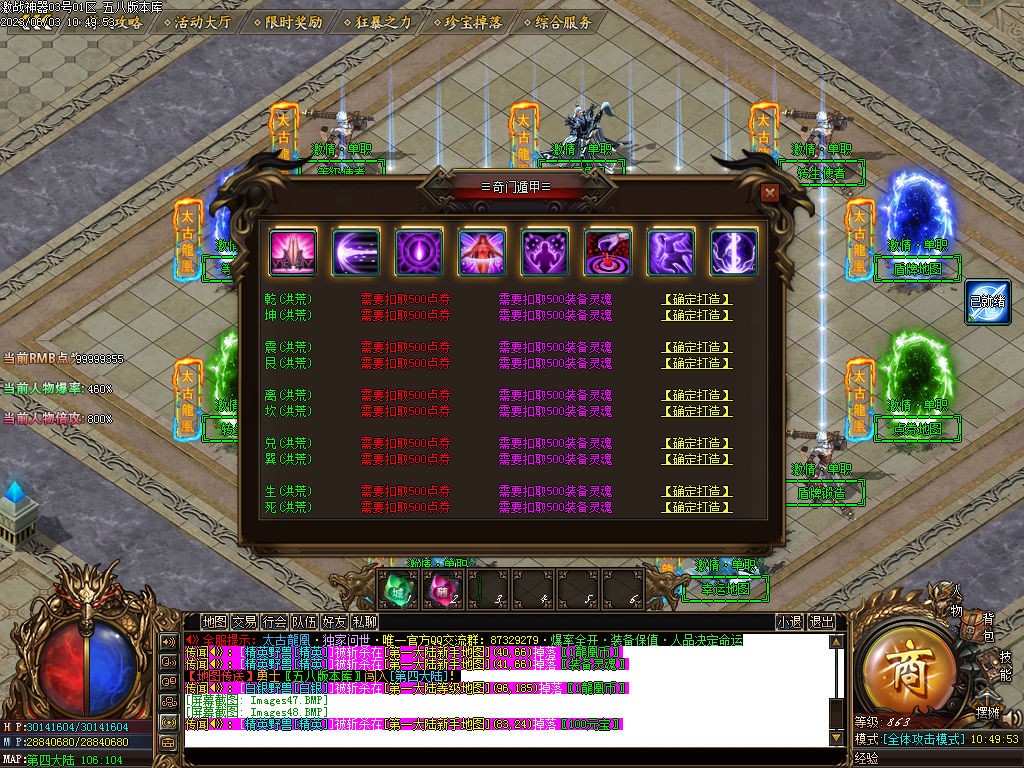 <土豪玩家:领取赞助礼包和沙捐狂暴后,抓紧时间升级【切割龙珠】和【回血时装】,【顶级富豪】处捐献点券,提升爆率!<>