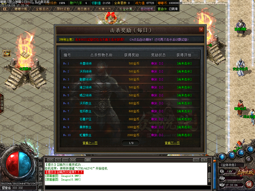 杀猫逐鹿出新村 斩妖除魔入盟重 近观绿涛汇碧海 远眺青山有苍松