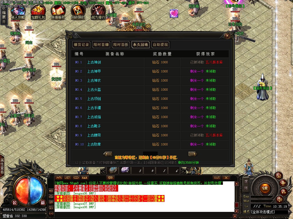 [游戏简介]:[本服地图超多,装备全部爆出,活动丰富,散人玩家天堂!]