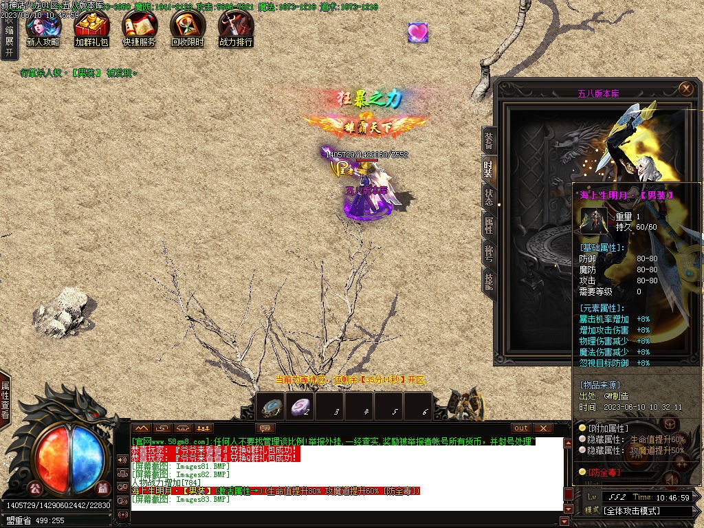 [游戏简介]:[本服采用高科技泡点功能,能打怪物能PK,还能唠嗑!]