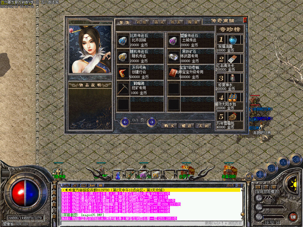 3、增加42级玛雅地图(1.5倍经验)、行会争霸地图(每晚8点,胜出者奖励200W金币)