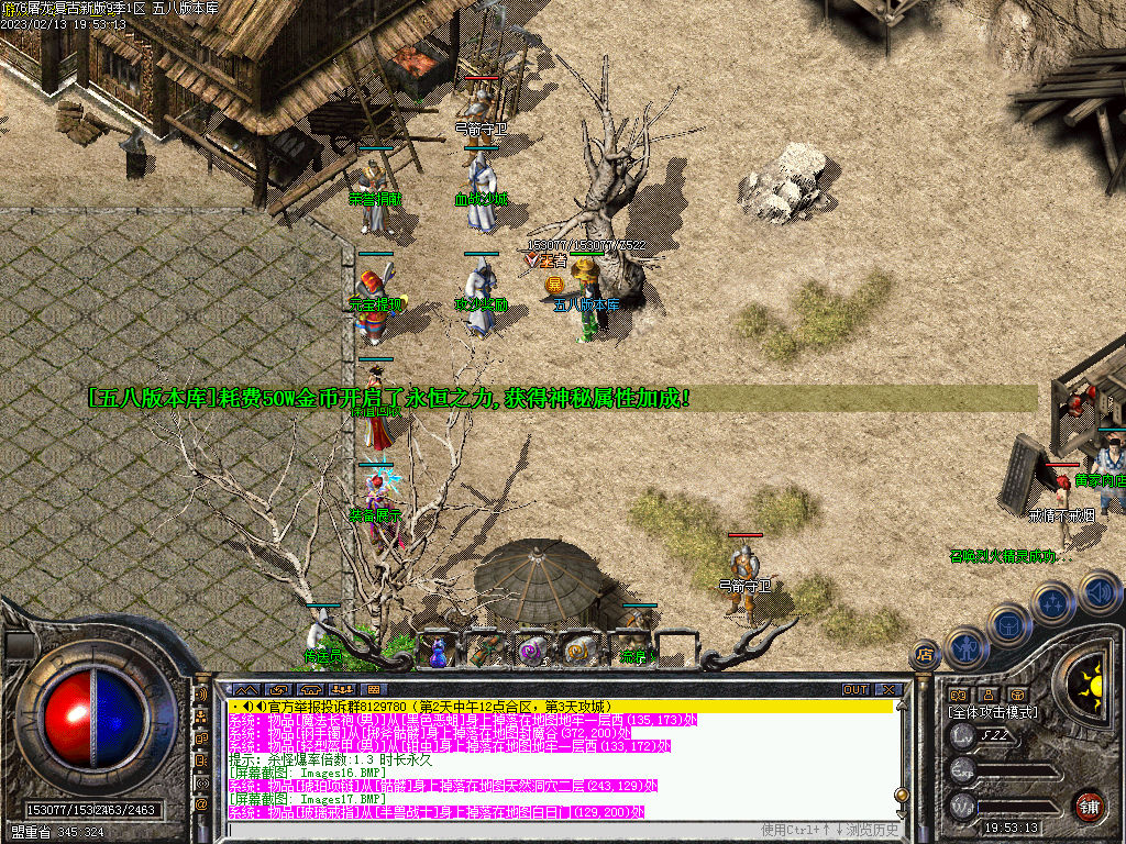 4、每周天3个新区,第二天晚上八点合区,第三天统一拿沙奖励捐献元宝!