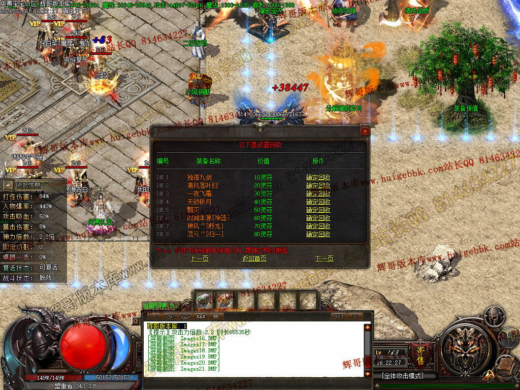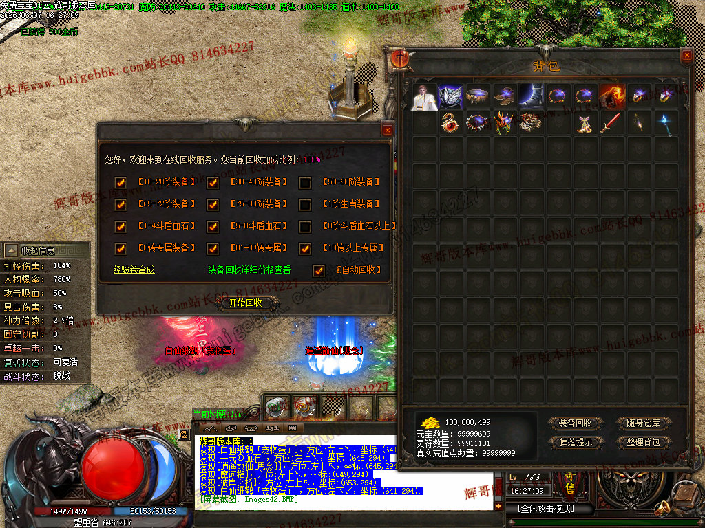 3.所有装备都能回收成 金币 元宝 以及灵符 可以说完全支持白嫖 只要你有时间你就是最靓的仔