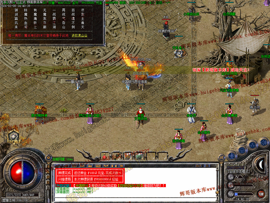 杀猫逐鹿出新村 斩妖除魔入盟重 近观绿涛汇碧海 远眺青山有苍松