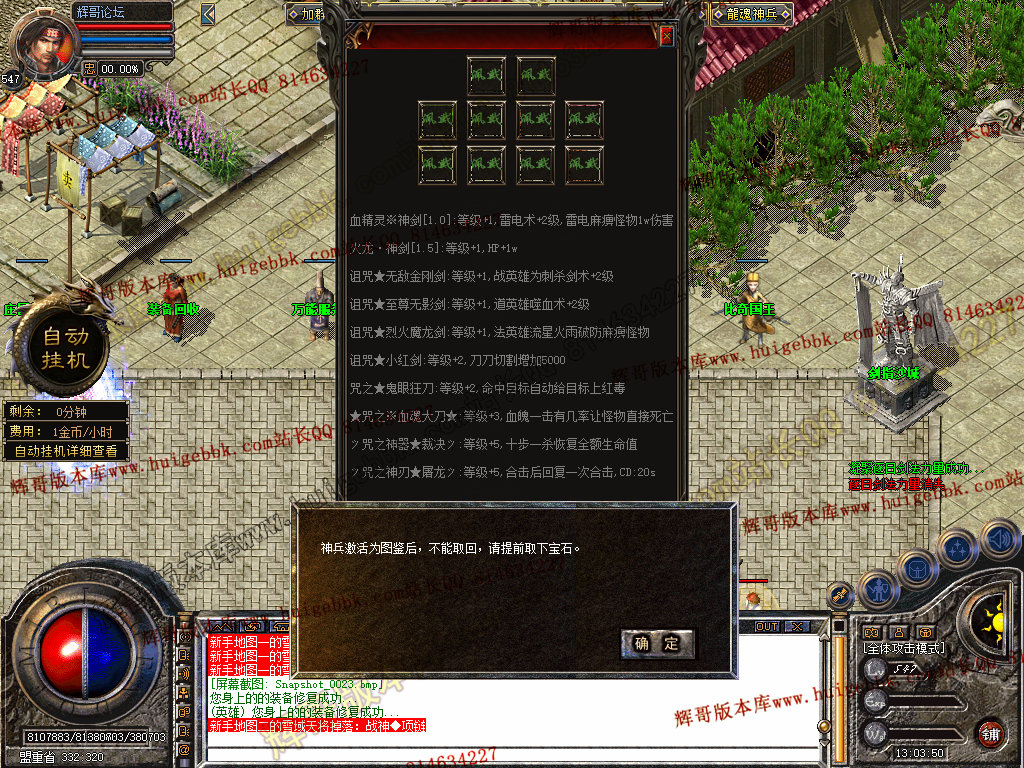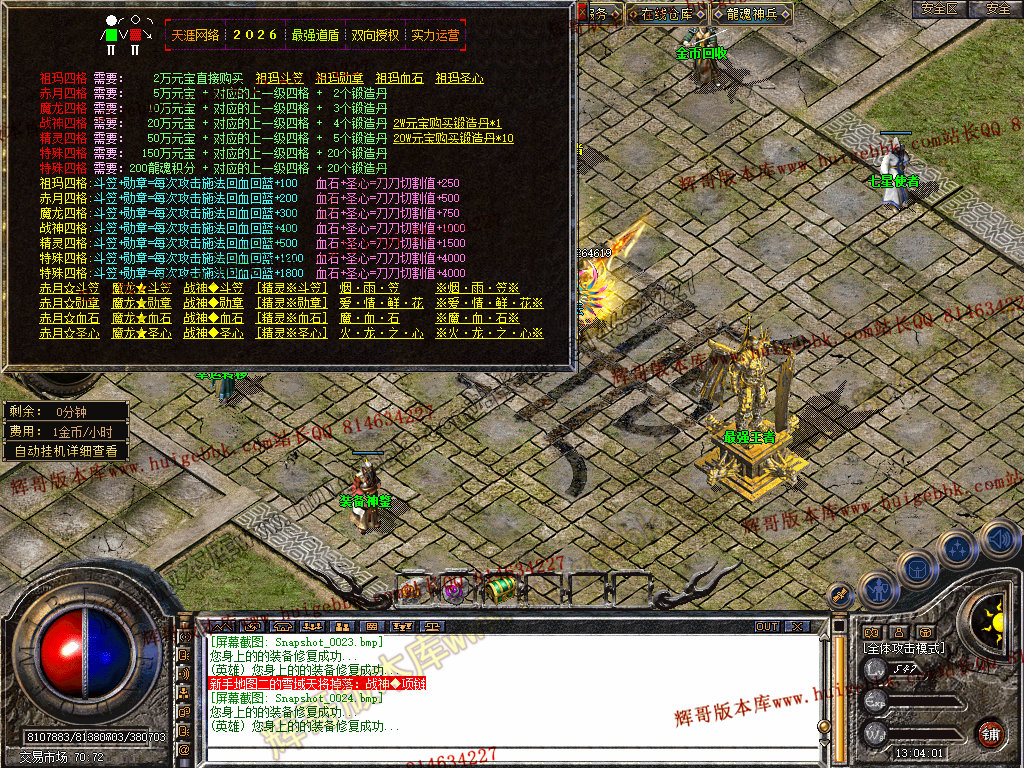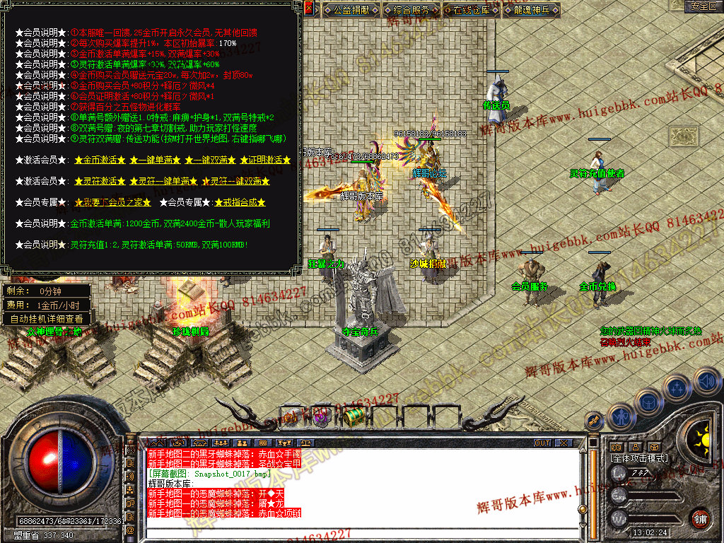 注:会员服务一键单满1200金币或240灵符(1套1.0四格),一键双满2400金币或480灵符(2套1.0四格+传送功能)功能方便老板节省时间可直接下图撸怪