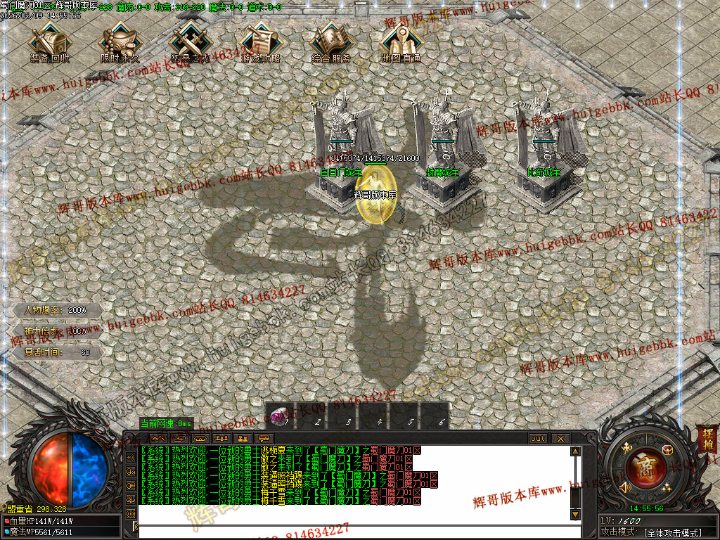 然后在土城买符文合成九阶符文,货币不够合成九阶的话 ,八阶也行,然后就去土城左边BOSS放把已刷新的BOSS一打遍;