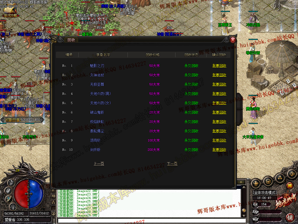 所有装备、材料、等级、经验、合成、一切只能打怪获得!