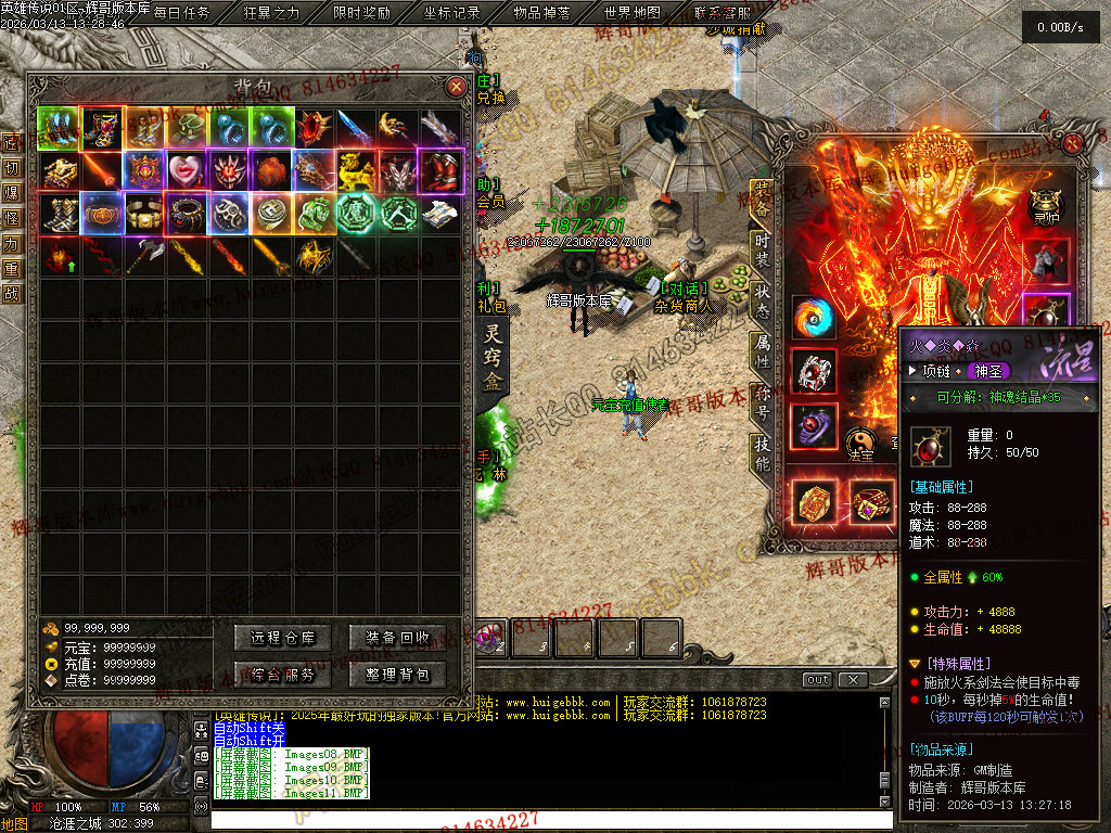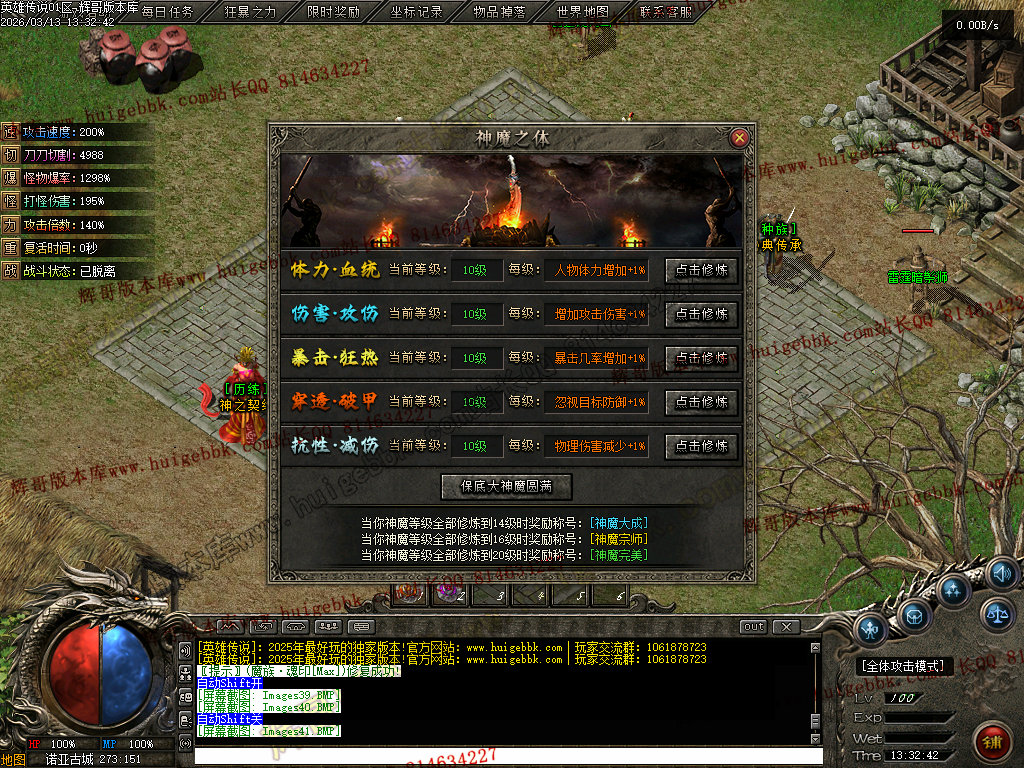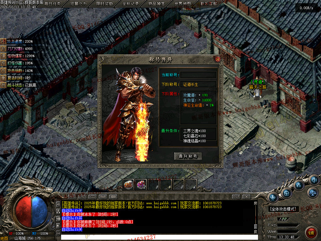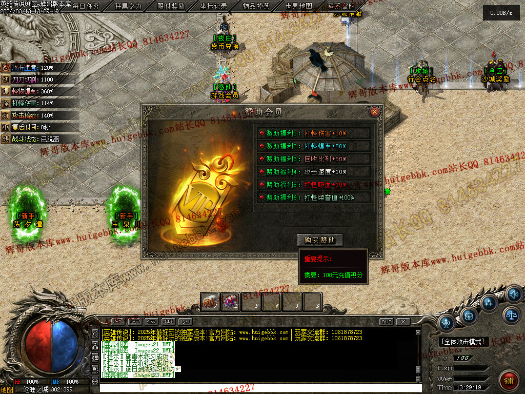 会员礼包:刀刀切割+5000、打怪爆率+50%、回收比列+50%、攻击速度+10%、