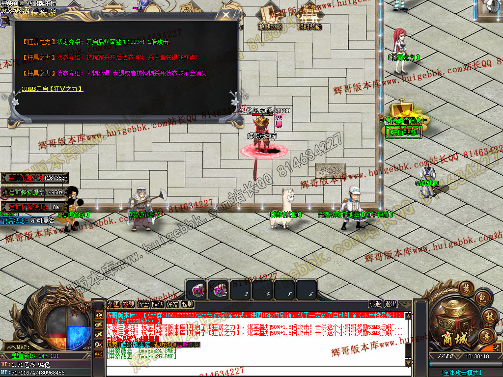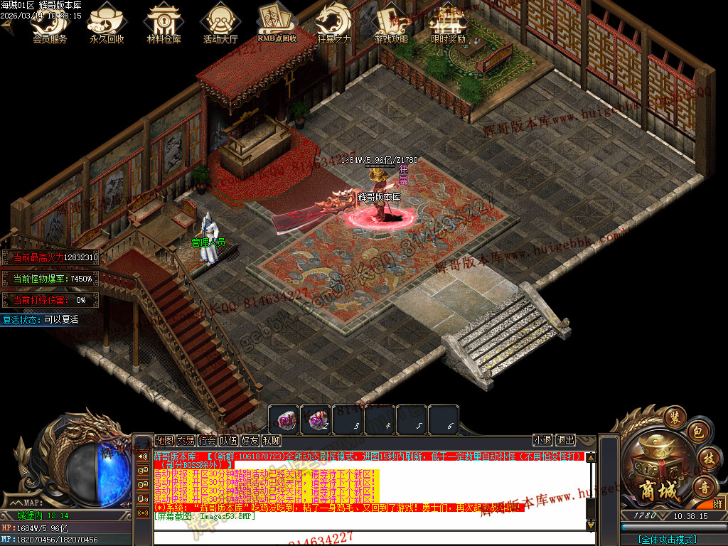 4.根据战力提升情况进入后续地图打宝!杀怪拿首杀获得消费点,红牛币,元宝!