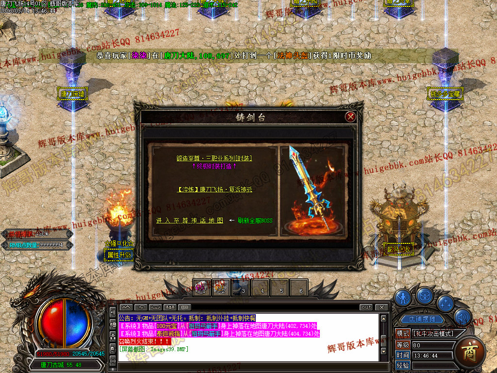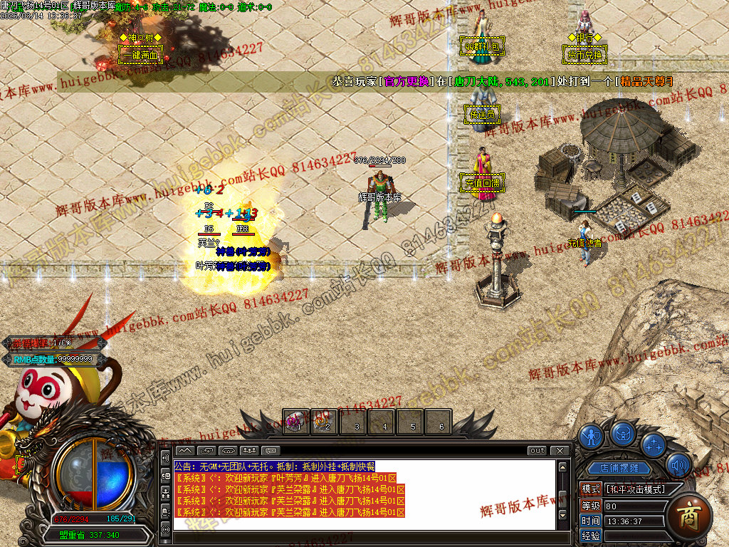 <7.打到元宝,在土城[爆率转盘]NPC碰碰运气(新手第一次免费获得1.1倍勋章)/SCOLOR=103>