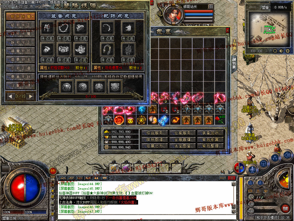杀猫逐鹿出新村 斩妖除魔入盟重 近观绿涛汇碧海 远眺青山有苍松