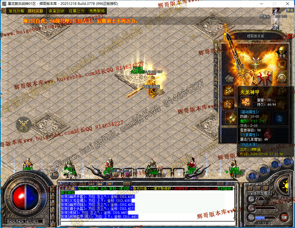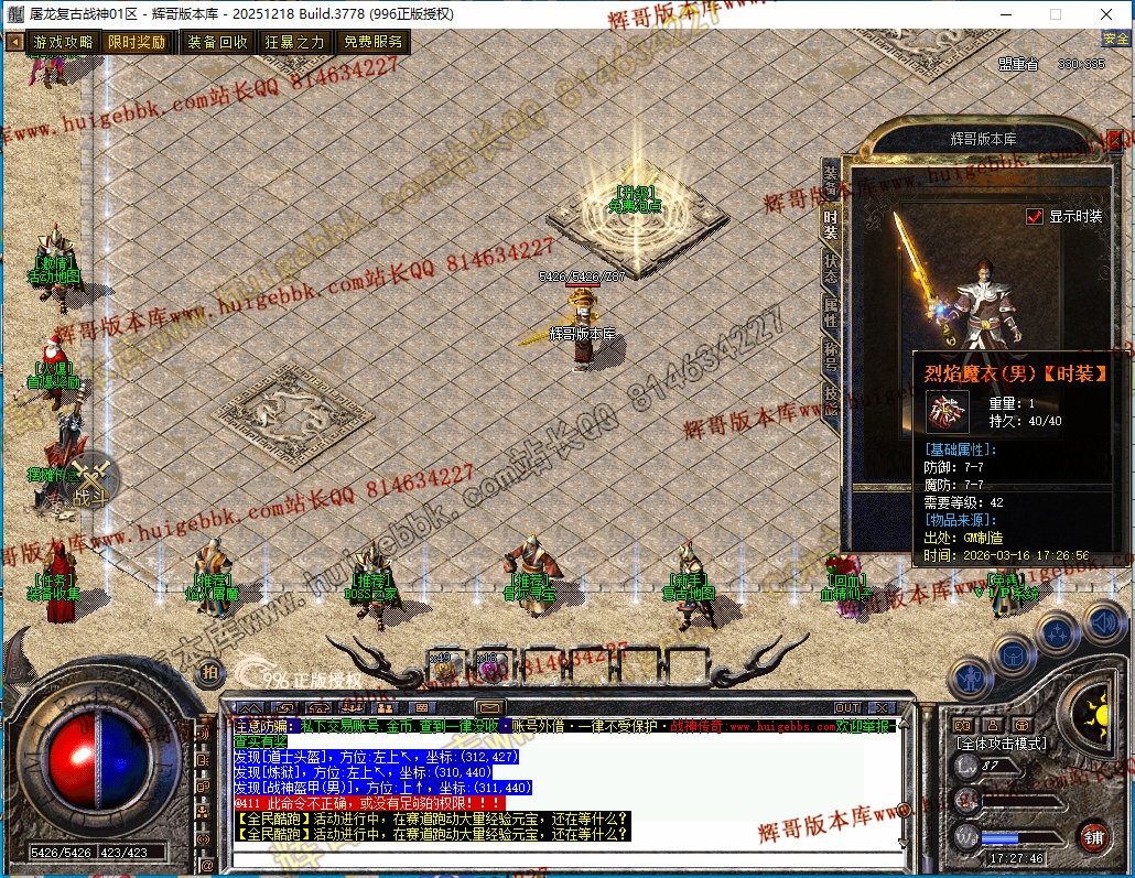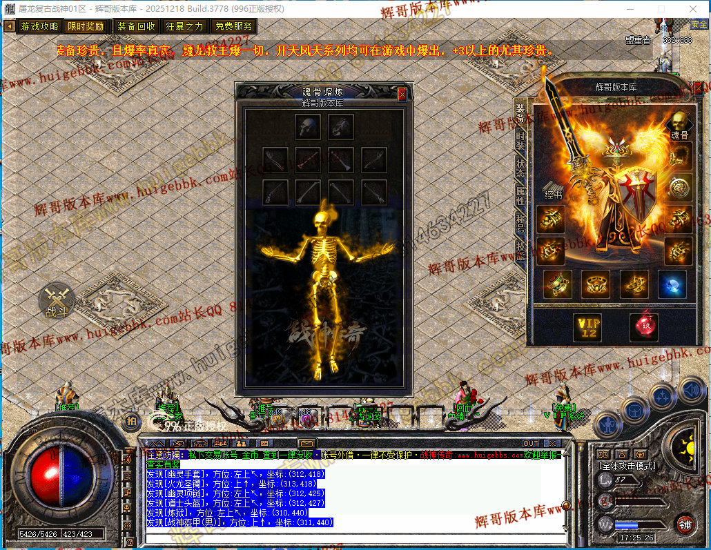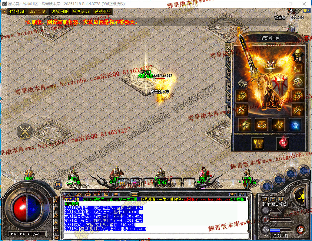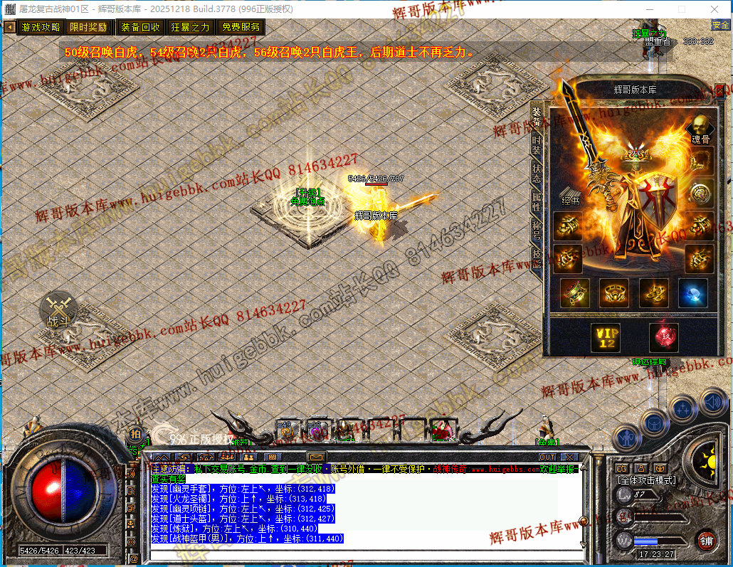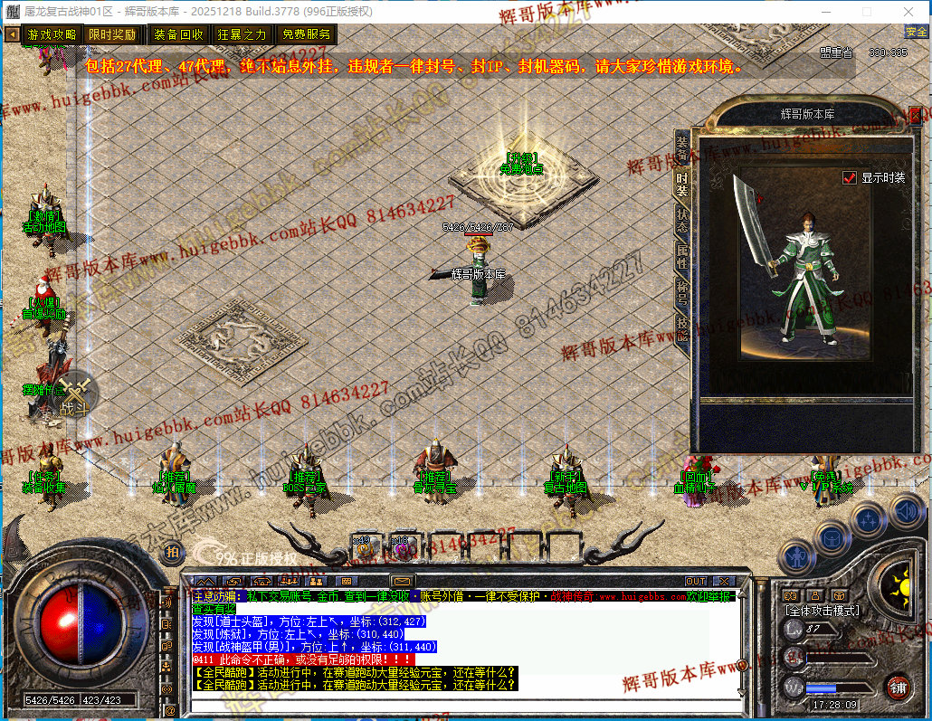 28-089独家1.80屠龙复古战神小极品+5三职业传奇-带假人-自动回收-经脉系统-996PC引擎