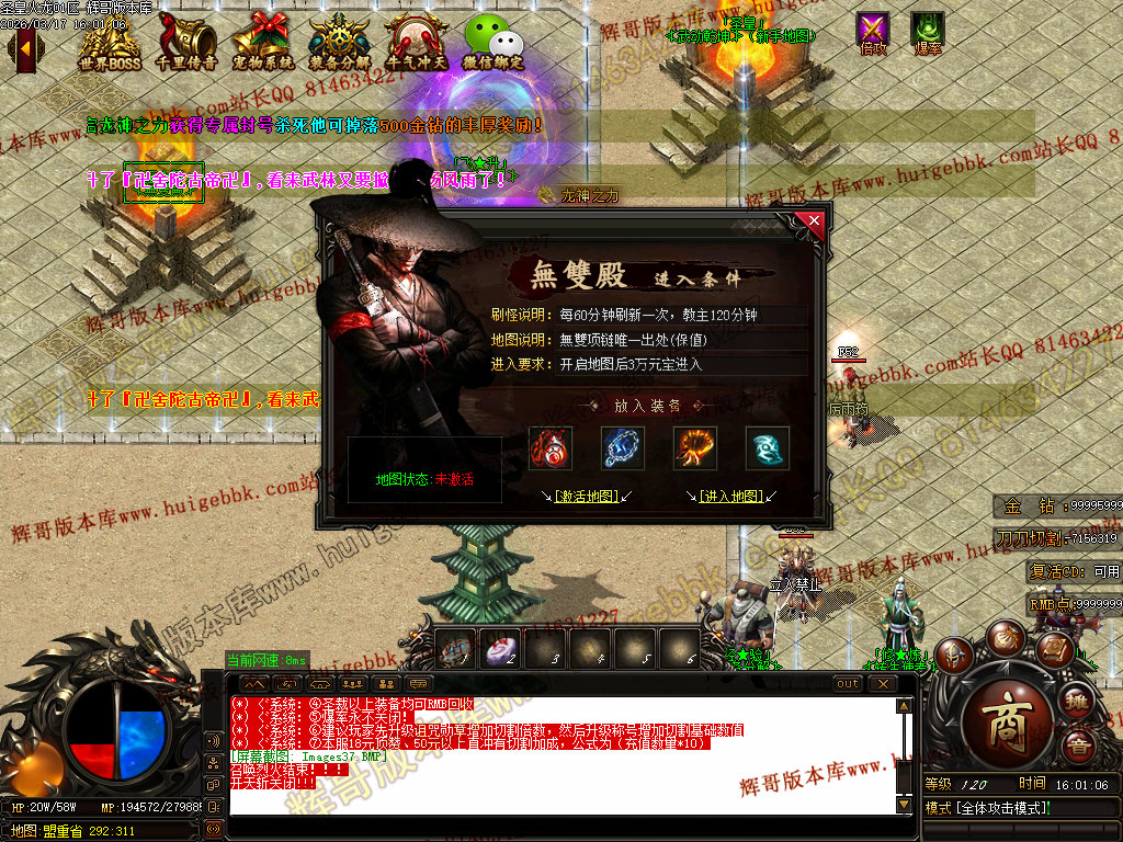 如果发现影响开区的大问题,可联系站长进行免费修复,细节问题自己处理不负责细节问题,