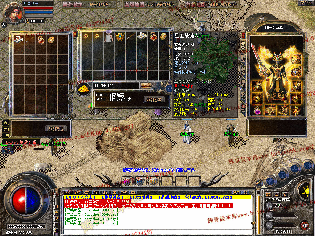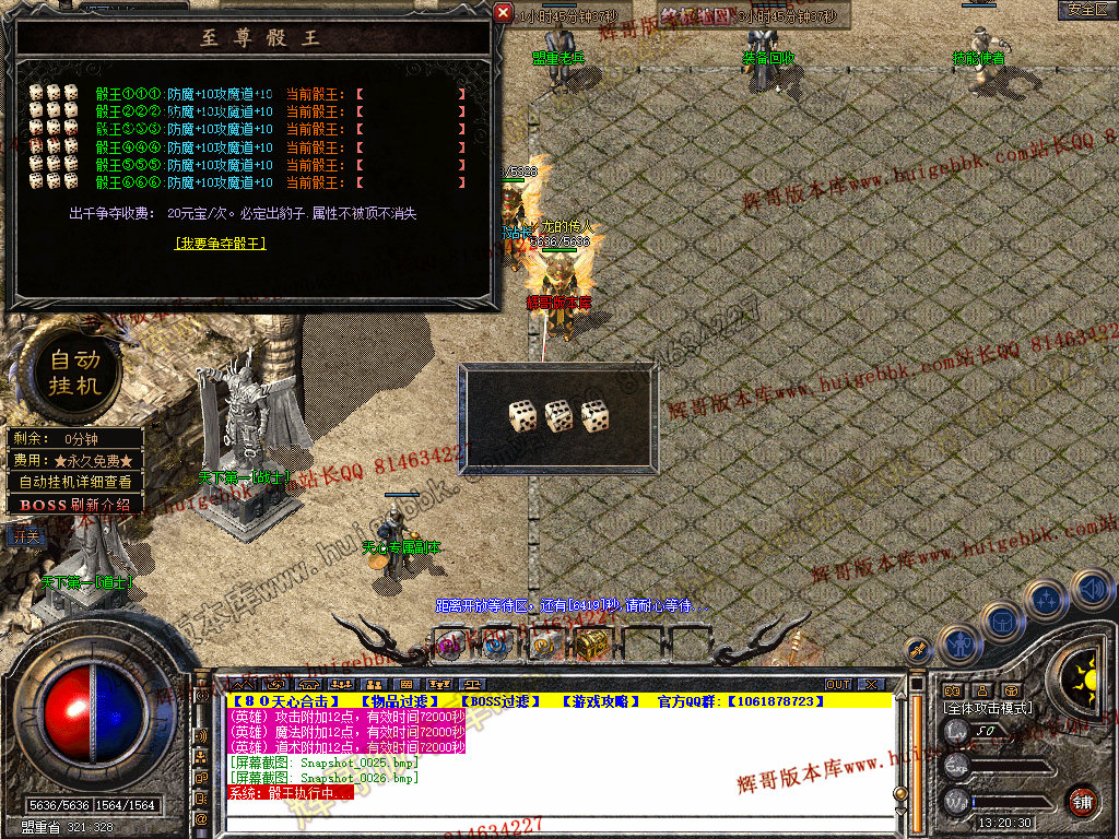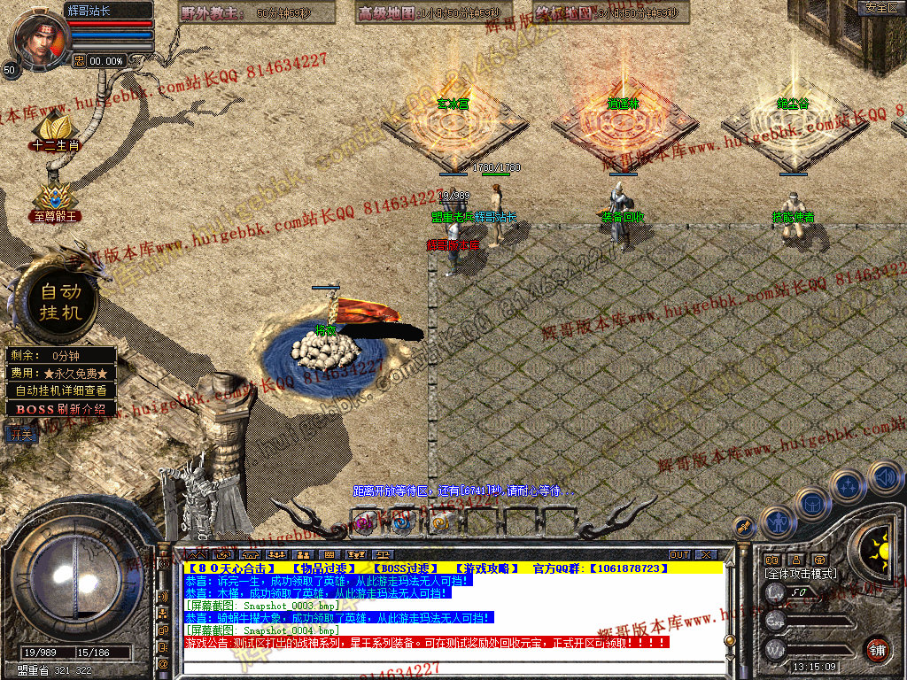 2.行会争霸 开区3天后每晚20-21点 此BOSS必爆战神系列,星王系列爆率极高