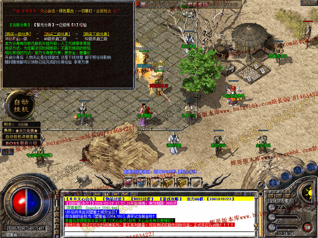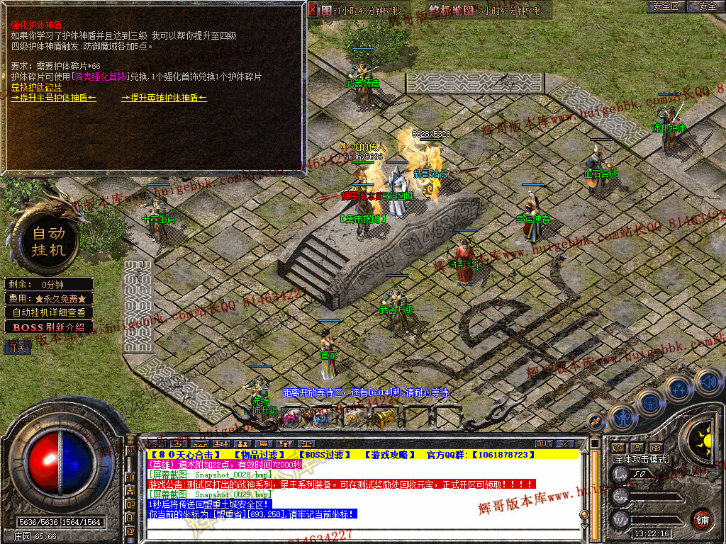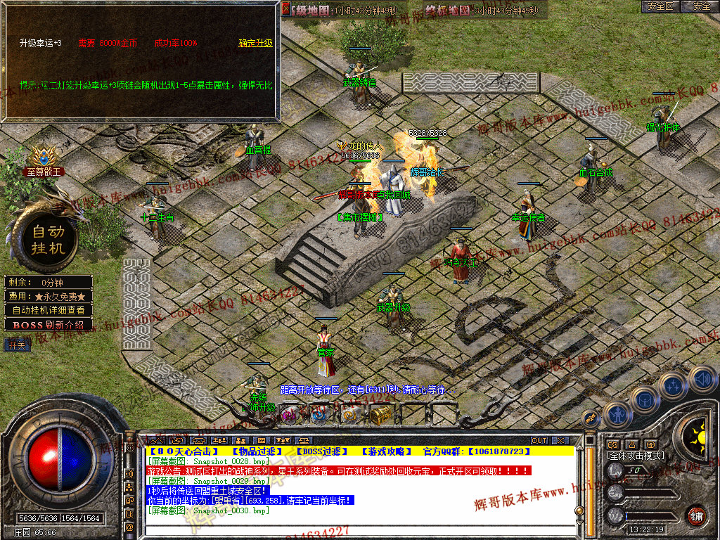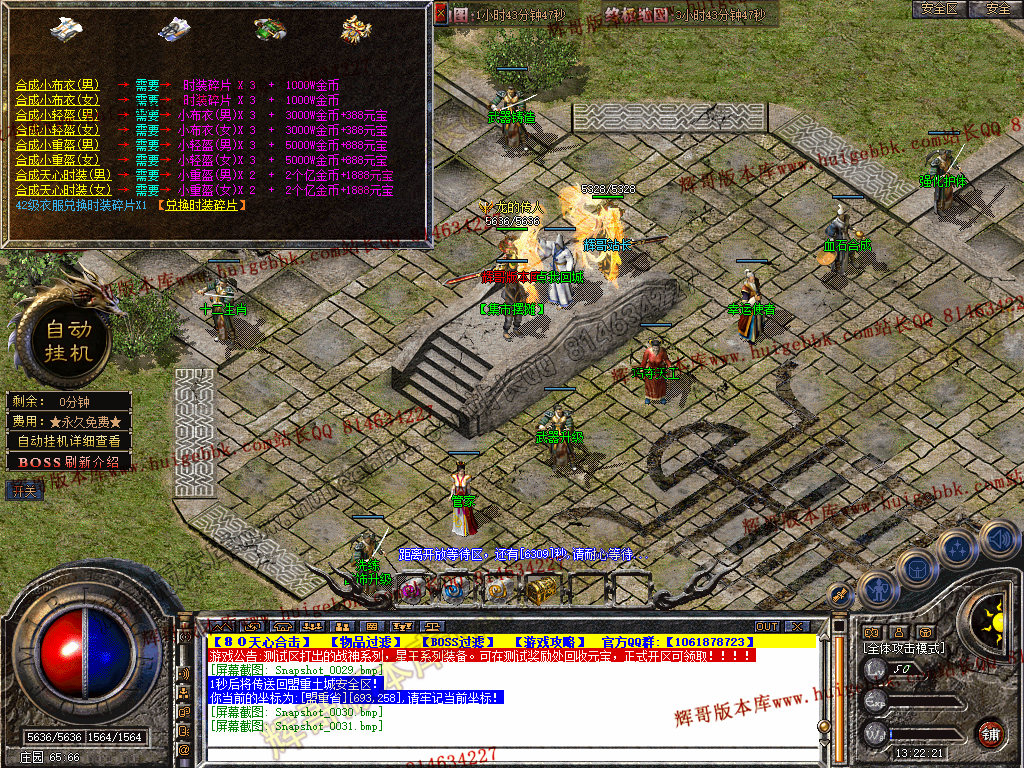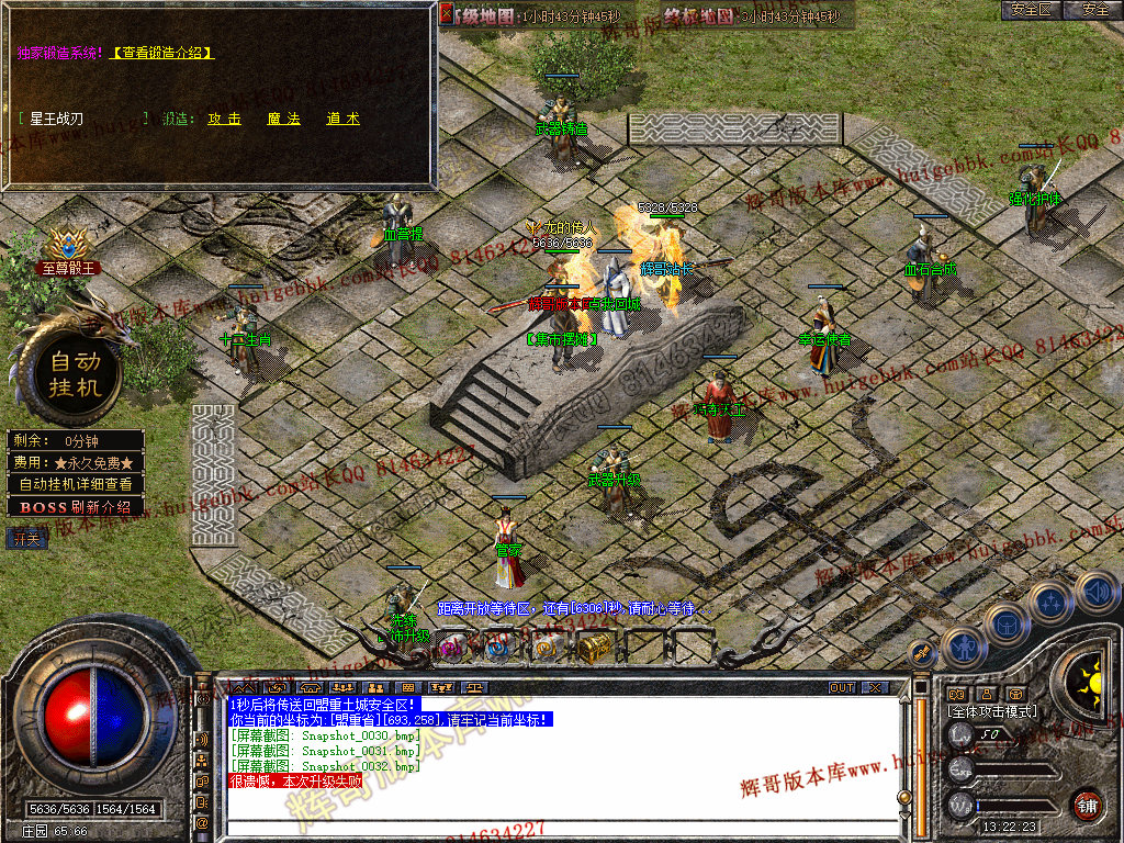 自动挂机:本服只要开启自动挂机10步之内有人就会自动飞随机无间隔!!此功能为了让挂机玩家不在担心挂机被杀装备被爆!