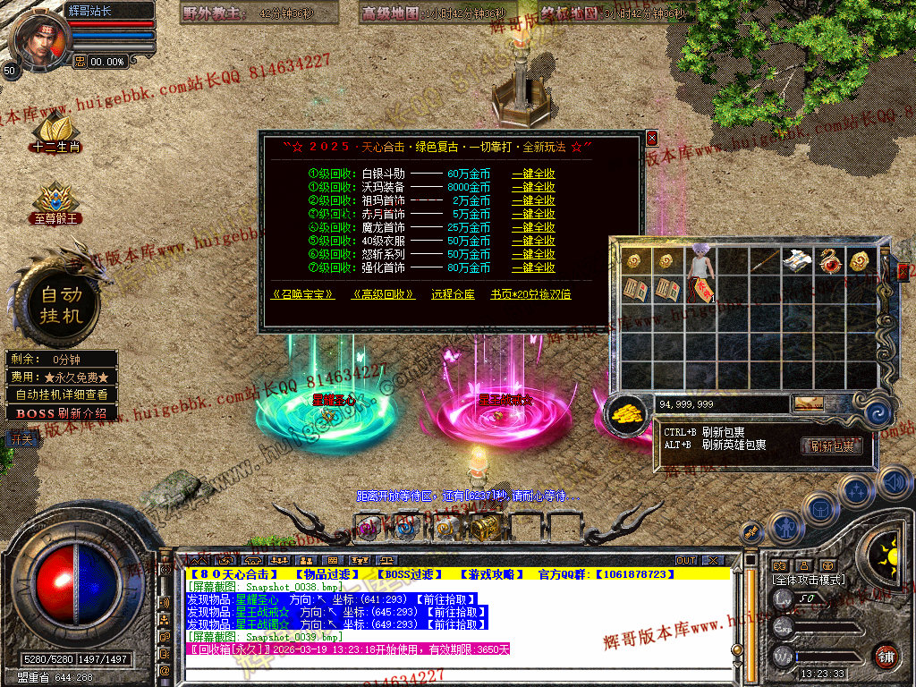 1.服务器设置上线就送自动修理装备功能,10分钟自动修理一次.加入玩家QQ群即可领取永久回收宝箱。