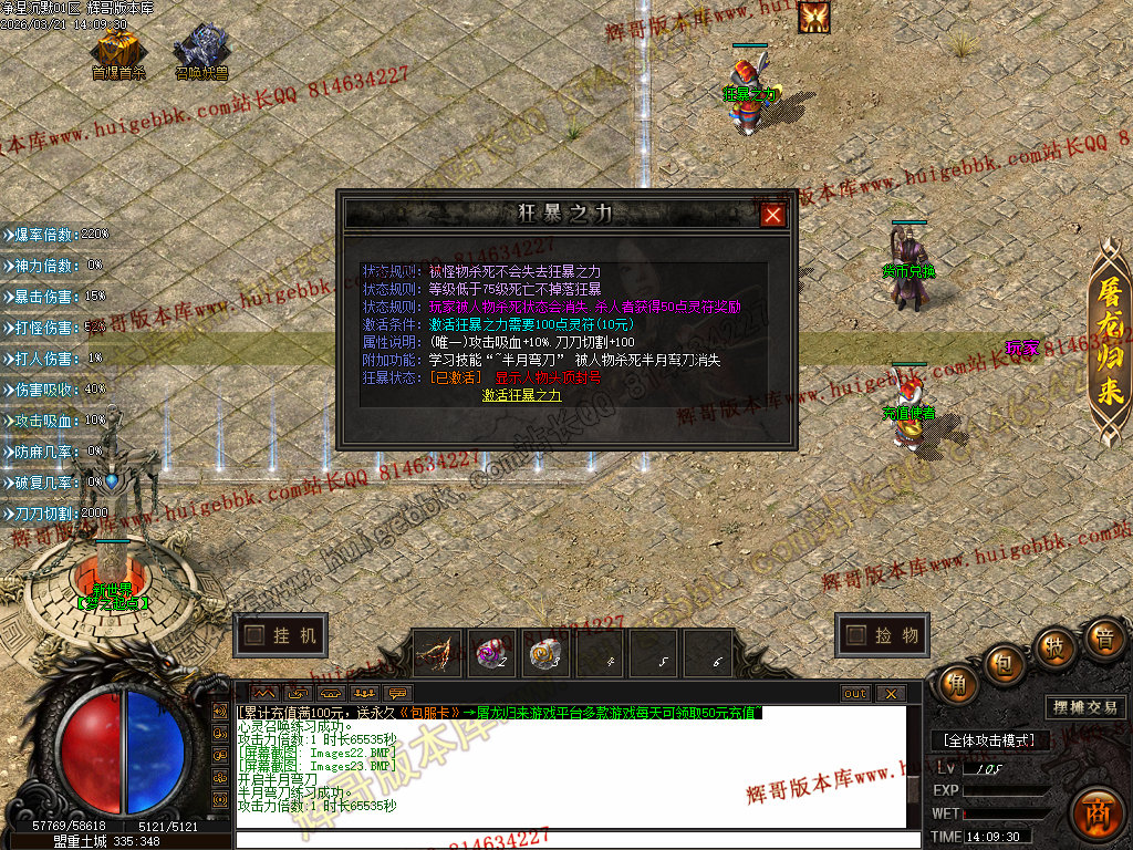 3、狂暴赠送圆月弯刀及吸血,前期部分切割