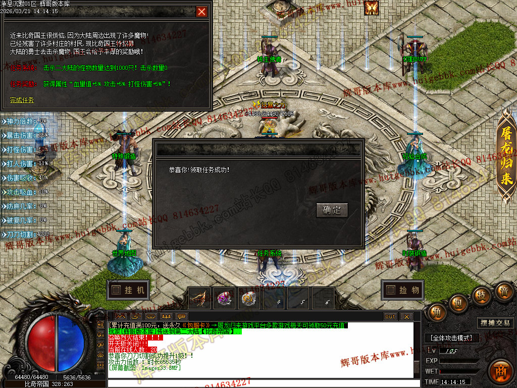 1、点击领取Q礼包:自动拾取、背包格子全开!