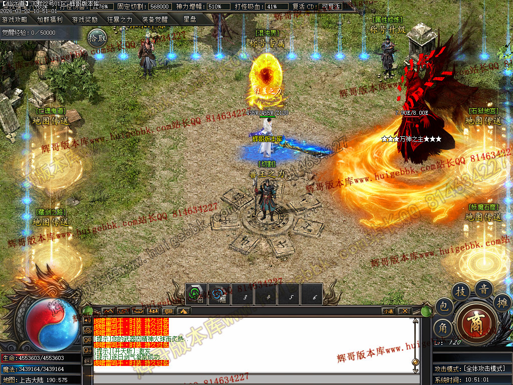 个人捐献=1000RMB点开启[打怪伤害+150% 怪物爆率+150% 打怪吸血+10% 暴击威力+20% 体力元素+20% 群怪神技 赤焰之轮 ]