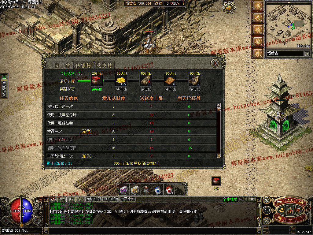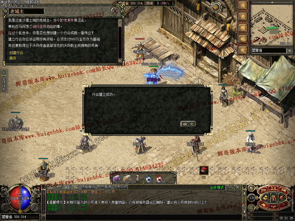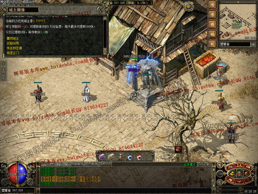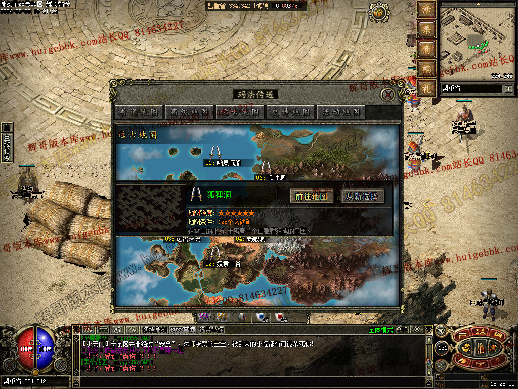 虎卫堂:从土城右下角的NPC六面神石传送到新手村。