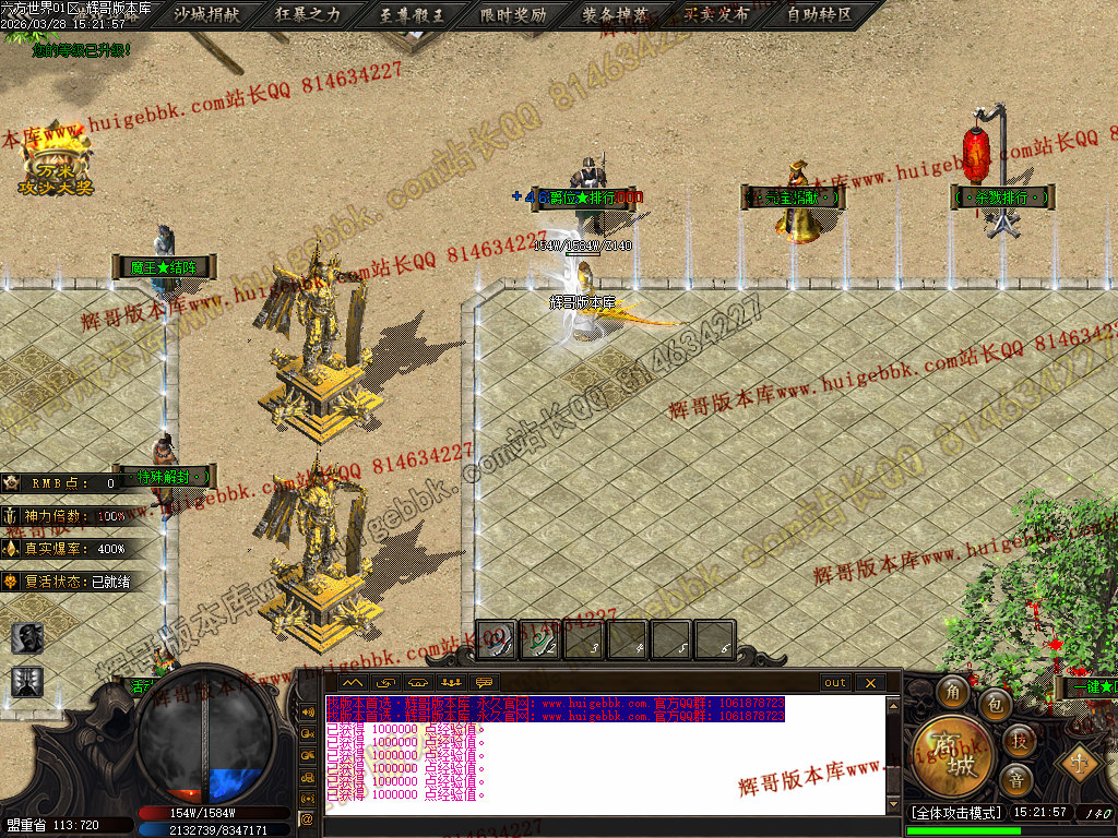 十区  测试  21:30   正式  22:30   爆率 + 280% BOSS刷新时间60分钟