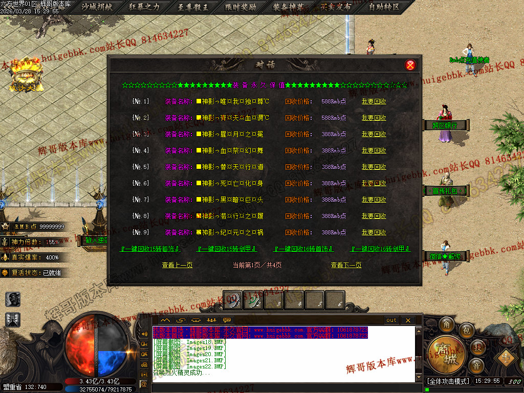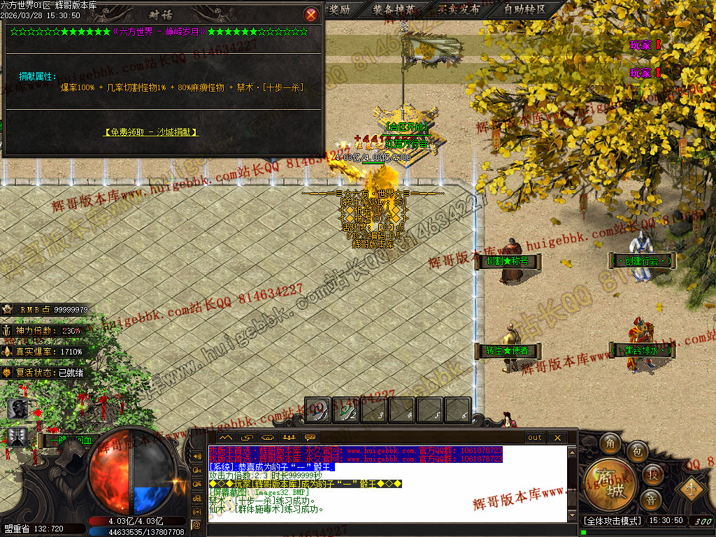 4.【大佬赞助】 充值数500 或 400修炼手镯 领取 爆率+400  全属性+5555  全元素+ 8%   几率切割怪物 4%生命 全屏吸怪附带绿毒范围17*17