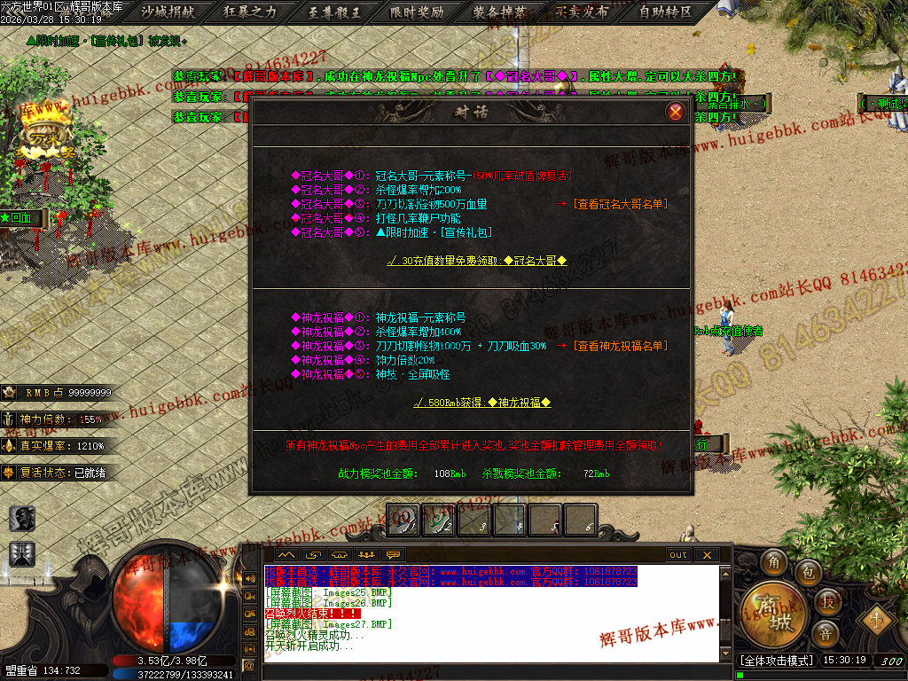 58元购买【神龙祝福】,强力属性 爆率.切割.吸血.神力 + 全屏吸怪