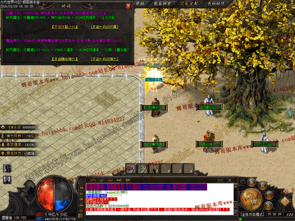 四区  测试  10:30   正式  11:30   爆率 + 160% BOSS刷新时间78分钟