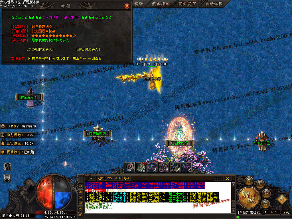 六区  测试  14:00   正式  15:00   爆率 + 200% BOSS刷新时间72分钟